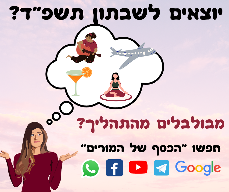 וכדי שלא תרגישו לבד בתהליך אז פתחנו קבוצות ווצאפ עבור היוצאים לשבתון תשפ"ד כדי שתוכלו להתייעץ, לשאול ולשתף(מוזמנים להצטרף!!!)
